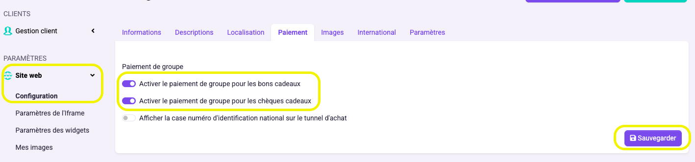 - Habilita la opción de pago grupal para bonos y/o tarjetas regalo.