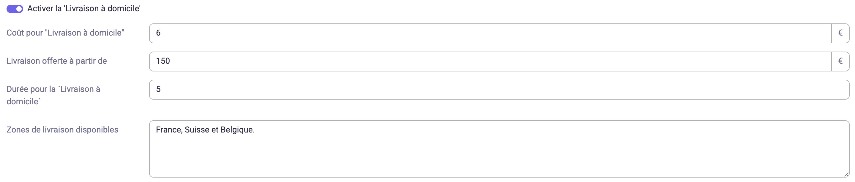 Zonas de entrega disponibles (es un campo de texto libre, donde puedes indicar todo lo que consideres útil: códigos postales, ciudades, etc.)
