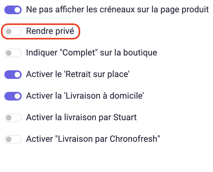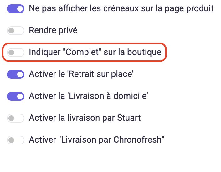 Vous pouvez désactiver les modes de livraisons dans les paramètres, sur une offre, sur un créneau tout simplement en décochant les modes de livraisons que vous aviez activés. Cependant, pensez à bien vérifier qu’il n’y a pas de commande en cours avec l’un des modes que vous désactivez.