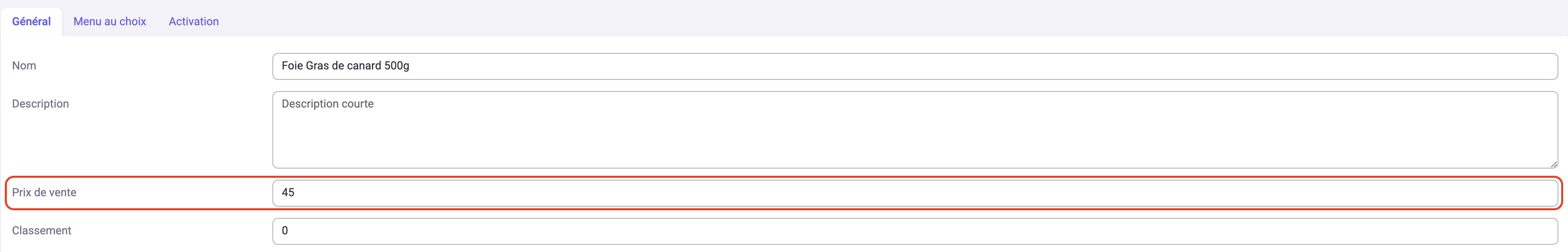 2- Dans le champ “Prix de vente” vous pouvez modifier son prix