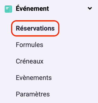 2- Allez sur "Événement" puis "Réservations".