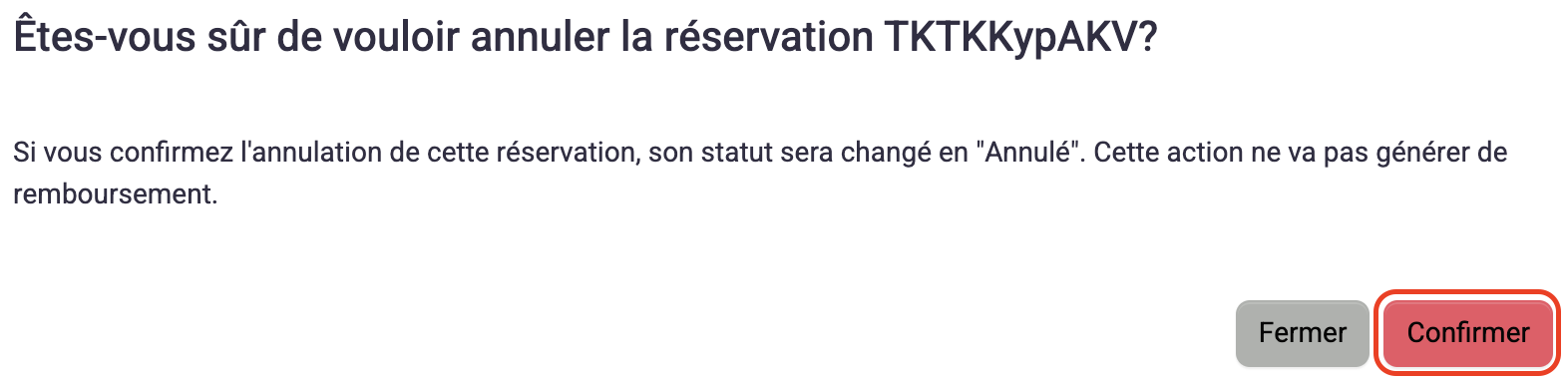 5- Cliquez sur "Annuler", une fenêtre s’ouvre puis cliquez sur "Confirmer".