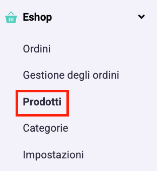 1- Vai alla scheda "Prodotti" nel modulo eShop